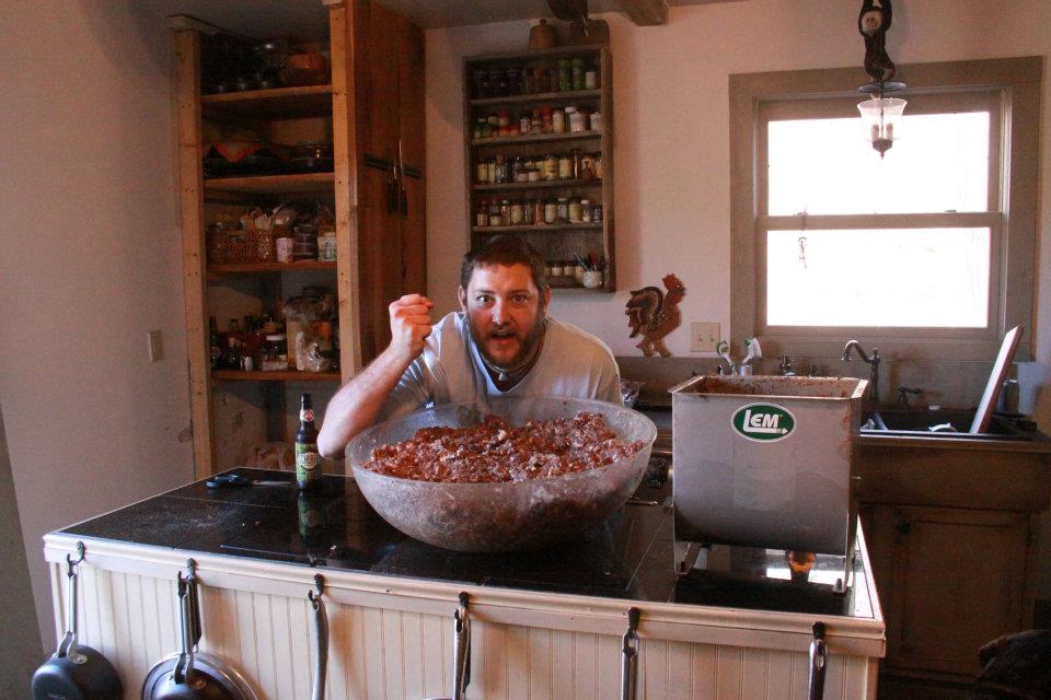 First, you will need meat. In the pic below we have 50% deer I killed, and 50% happy pig raised by a friend of mine on pasture. We butcher and grind all our own meat, but it’s not a necessity for this operation, so I will skip that step.