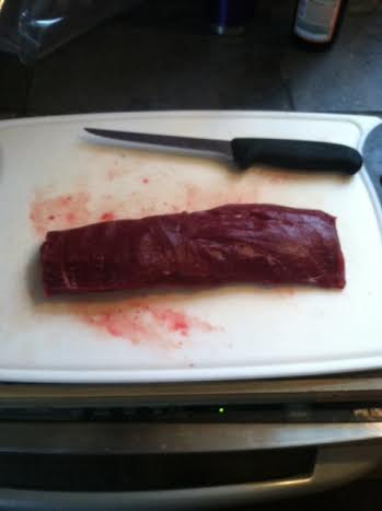 Silverskin is pretty much like chewing on a silicon baking mat but without all the delicious cookie residue, so it needs to be removed along with any little bits of fat or anything else white.  A regular old filet knife is what I use for this.  You don’t need any fancy damascus steel blade, the filet knife really works the best because it can slide beneath the silverskin and remove it without accidentally removing any of the delicious meat.
