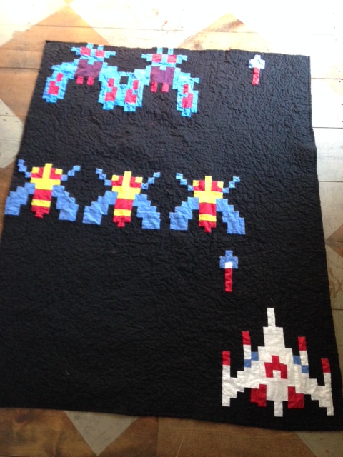 I can definitely tell that this is something that gets easier the more you do it, so I’m excited to keep going with it.  The Galaga quilt is the first one I tried this with.