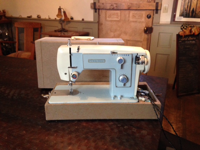 My mom taught me how to sew and how to use her sewing machine when I was just a wee lass.  I used it to repair clothes and make basic things like tote bags and hippie skirts and such.  I was in college when my grandparents decided to downsize, and I inherited my grandmother’s old Penncrest.  I used this machine exclusively for probably the next ten years.  It was, and still is, a table-shaking, fabric chewing beast that weighs as much as a large dog.  Or, in our house, an adequately sized dog.