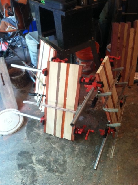 So then we just glue our three boards up, clamp them good, and wait 24 hours.