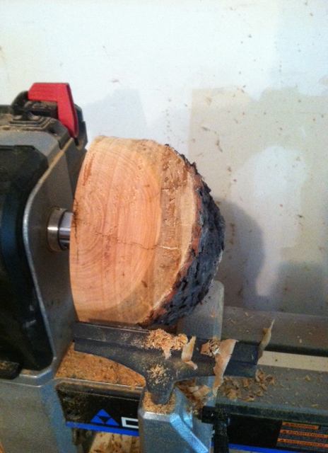 Once in the chuck, it’s quick work to clean up the sides. This isn’t the shape I was hoping for, but the wood dictates what it is sometimes, especially when using mostly rotten firewood.